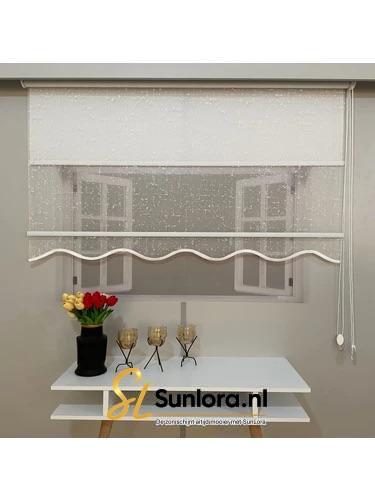 Dit systeem combineert de voordelen van een lichte vitrage en een verduisterend rolgordijn in één elegante oplossing.