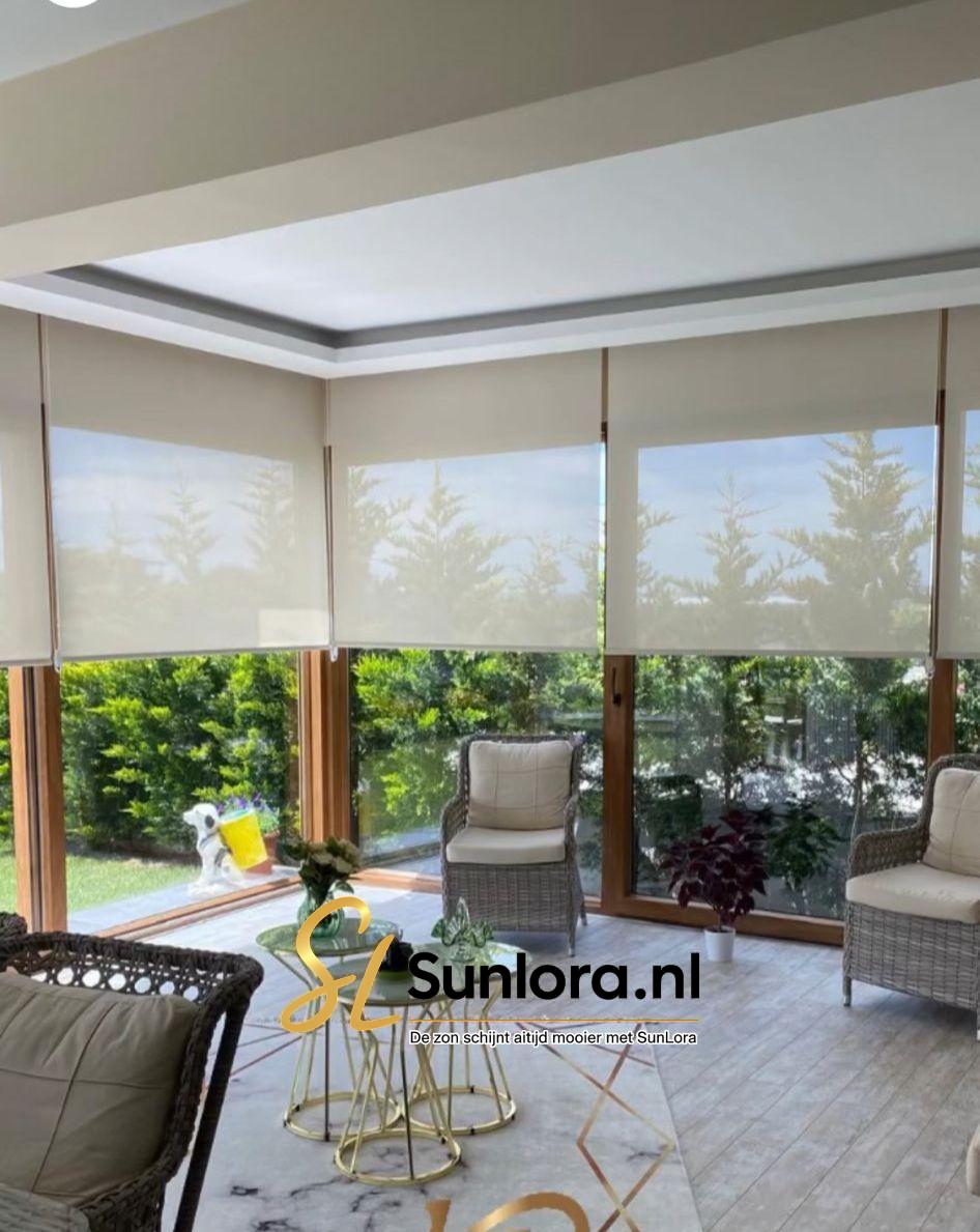 Geniet van comfort, licht en privacy met de sunscreen rolgordijnen op maat van Sunlora.nl.